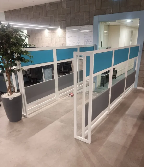 מחיצות מודולריות בעיצוב נקי ומודרני, מאפשרות חלוקה חכמה של חלל המשרד, תוך שמירה על תחושת פתיחות ויצירת אזורי עבודה פרטיים מבלי לסגור את החלל. אידיאליות לסביבות עבודה משתנות, מוקדי שירות וחללי עבודה גדולים.